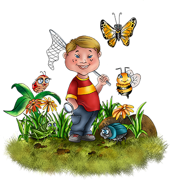 Ernie Entomologist – Ernie is a wonderful sensitive little Downs Syndrome boy who is fascinated by the world of insects and works towards saving them from extinction.